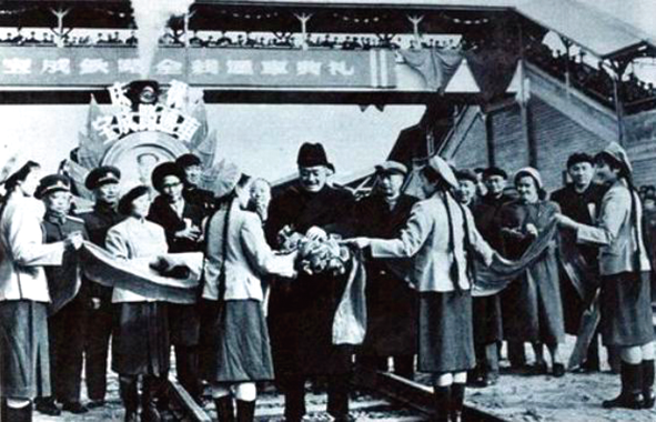 1958年1月1日,贺龙、聂荣臻参加宝成铁路通车典礼