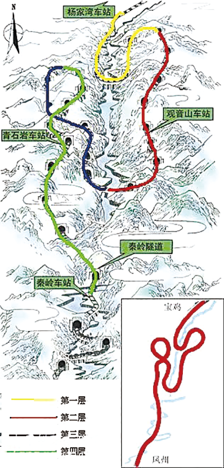 宝成铁路在陕西省境内的一段示意图