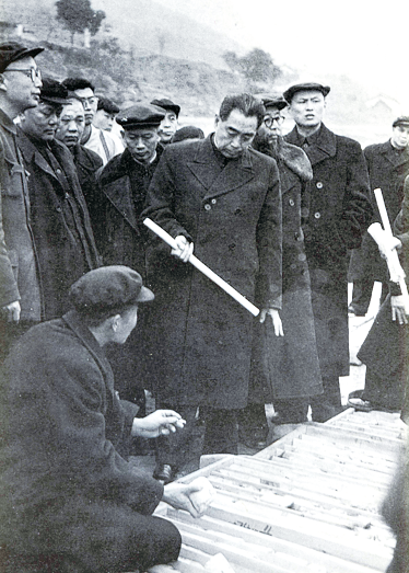 1958年2月,周恩来视察长江,听取三峡南津关坝址岩芯情况的报告