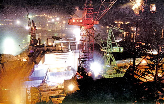 建设中的长江三峡工程夜景