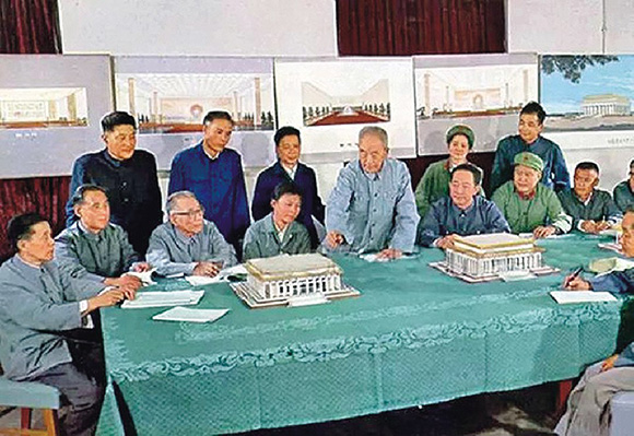 纪念堂选在哪里?一开始有多种声音,包括天安门广场、中南海瀛台、香山等地。在天安门广场新建一座建筑物,不是那么简单的,方方面面都要考虑到,尤其是建筑物的高度、风格要与周围已有的建筑相协调。最后,确定纪念堂通体高33.6米。一方面,可以避免在天安门城楼上看纪念堂会有正阳门的大屋顶剪影罩在纪念堂上。另一方面,纪念堂不会有压倒人民英雄纪念碑之势。经过几轮磋商,纪念碑南侧选址方案被确定。