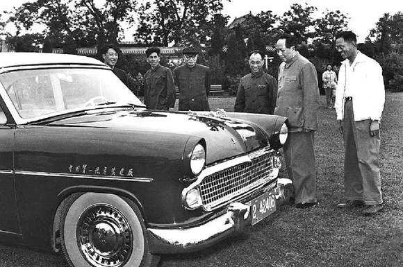 1958年5月21日下午,毛泽东在中南海怀仁堂后花园,观看国产的第一辆东风轿车(红旗轿车的前身