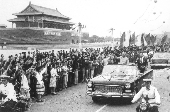 1961年9月22日,刘少奇乘坐红旗轿车欢迎古巴总统访问中国