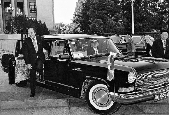 1997年5月15日,法国总统希拉克来华访问,高兴地乘坐红旗轿车