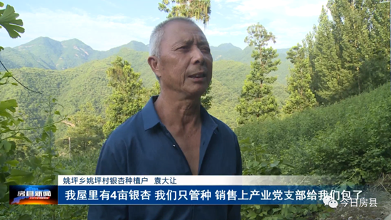 姚坪乡姚坪村银杏种植户 袁大让: 我屋里有4亩银杏,我们只管种,销售上产业党支部给我们包了,平时的病虫害、技术上,产业党支部也派人来指导,有了产业党支部,我们发展产业信心十足。