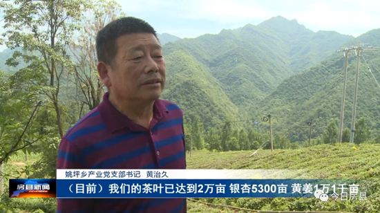 姚坪乡产业党支部书记 黄治久: 我们(党建引领产业发展)的主要做法是:支部建在产业链上,党员聚在产业链上,群众富在产业链上。(目前)我们的茶叶已达到2万亩,银杏5300亩,黄姜1万1千亩。