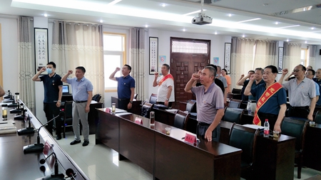随后,“光荣在党50年”纪念章颁发仪式在庄严嘹亮的国歌声中拉开帷幕,全体党员举起右手,面向鲜红的党旗重温入党誓词,原党总支书记姜大鹏同志为大家上了一堂生动的党史课。党组班子成员夏光生、洪军分别为“光荣在党50年”的两名老党员颁发纪念章,双手接过金灿灿的纪念章,两名老党员激动万分、仔细摩挲,表示将珍惜党赋予的这份无限荣光,发扬“退休不褪色”的优良传统,追随党的脚步继续前行。