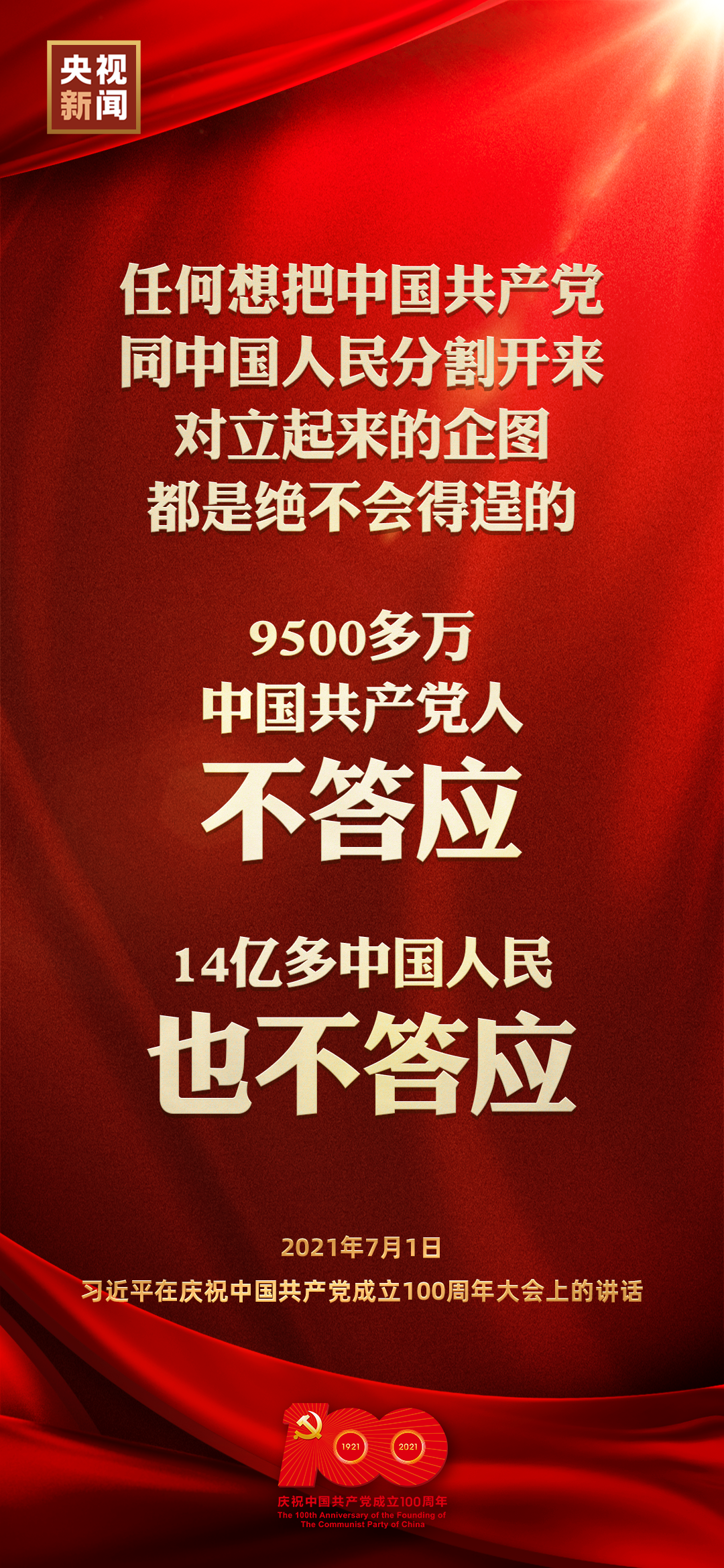 今天,庆祝中国共产党成立100周年大会在北京天安门广场隆重举行,中共中央总书记、国家主席、中央军委主席习近平发表重要讲话。