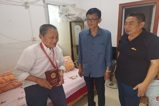 今日房县网讯 通讯员 徐永光 报道 : 7月5日,县林业局党组成员、工会主席陈军代表林业局党组来到林业局退休职工抗美援朝老战士李益春家中走访慰问,并送去纪念抗美援朝70周年纪念章,向他致以崇高敬意和亲切问候,并详细了解李益春老人的生活起居、身体状况,嘱咐家属要用心照顾老人,让老人安享晚年。