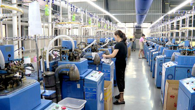 今日房县网讯 :近日,回龙乡瑞泰针纺厂内的自动化织袜机正全速运转,村民们变“工人”忙着赶订单。瑞泰针纺厂于今年3月份落户回龙乡黑獐沟村,车间现有80台机器,月产量50万双袜子左右。目前企业正在为后续扩能做准备,满产后织袜机将有150台。