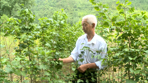 青峰镇龙王坪村银杏种植大户房承艮说:“我们龙王坪村在党支部的号召下,发展产业,银杏树这个产业比种粮食要强些,省工省料,采收了以后就直接可以变钱,增加农民收入。”