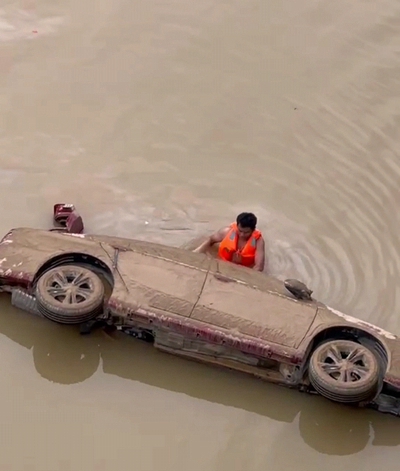 7月20日12时许,刚刚吃完午饭的袁格兵从宿舍出来,骑着一辆共享单车出门办事。当他来到陇海路京广路路口时,看见一辆小轿车被水淹没,只剩车顶在水面以上,道路其他地方也出现了大面积堵车。