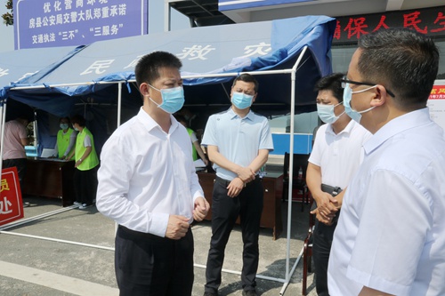 城区高速路出口已实行交通管制,对来房人员进行测温、扫码、登记。纪道清来到高速路口执勤点,详细询问防控措施、客流量、人员排查登记等情况。纪道清指出,高速路口是我县“外防输入”的第一道关口,要坚决严防死守,提高标准、加大强度、严格管理,对入境车辆和人员做到逢车必查、逢人必检,不漏一车、不漏一人;要科学精准排查中高风险地区来房人员,健全管控机制,提高应急处置能力,做到“应隔尽隔”;要加强防疫人员后勤保障,做好个人防护、防暑降温,确保一线人员健康,坚决守好疫情防控关口。