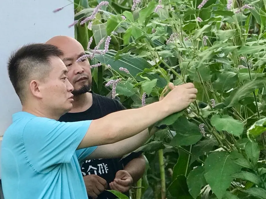 (李二虎与侯志辉在研究蓼花)