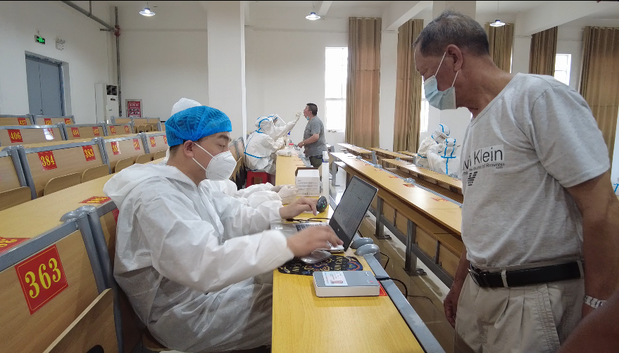 天气虽然闷热,但居民的参与积极性很高,接到通知后,纷纷到核酸检测点参与核酸检测。