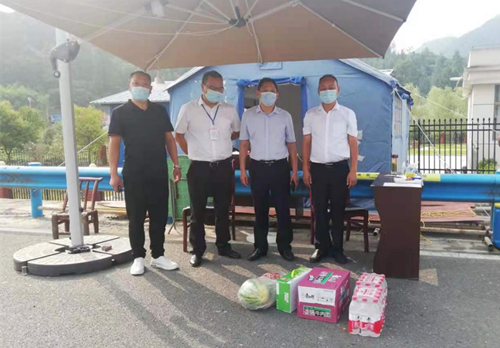 在窑淮高速卡口值班人员的笔记本上,详细的登记着每一笔捐赠物资,据该卡口带班人员周本进介绍:这几天我们这已经有好几位爱心群众送来防暑物资了。8月3日中午爱心人士送来了饮料和瓜果;8月4日上午陈家铺村民柯尊敬送来了葡萄和西瓜......他们送来的物资,不仅仅是对我们工作的肯定,也更让我们坚定了战胜疫情的信心”。除附近的爱心居民外,窑淮镇财政所也积极践行责任与担当,主动向窑淮镇淮水村高速路口、界山村防疫点捐赠矿泉水、方便面、饮料、水果等防暑降温物品,用实际行动为卡口值守人员做好后勤服务,为防疫点工作人员在高温下工作提供坚实保障。
