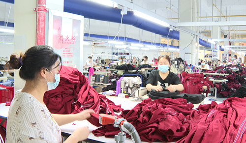 在乔凡尼服饰公司和八方鞋业生产车间看到,进出口处整齐摆放着消毒洗手液、测温枪、口罩等防疫物资," 测体温、登记" “请自觉佩戴口罩”等宣传标语张贴在醒目位置。生产车间里,员工们也都佩戴口罩,正在忙碌着加工生产服饰。据企业负责人介绍,近期企业按照疫情防控要求,规定企业员工上下班必须规范佩戴口罩且必须接种新冠疫苗,每天对厂房、食堂进行 " 消杀 "、严控人员进出,严格开展两码查验、测温等防疫工作,多项措施管控企业园区疫情风险。