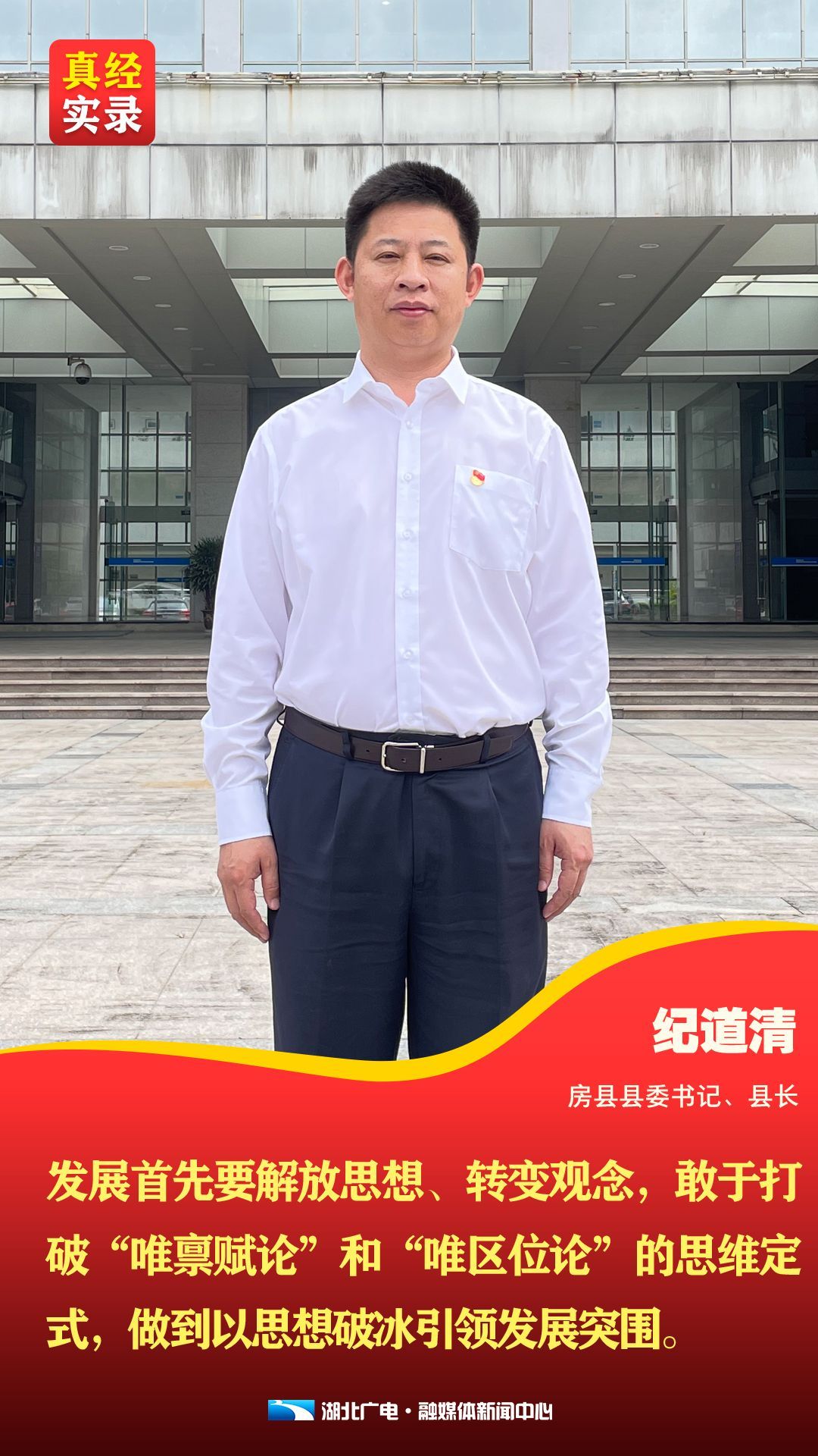 “房县其实也有产业发展的潜力,特别是这两年做的循环产业,废旧资源再利用,这也是一个无中生有的案例。过去我们没有循环产业,随着这两年变废为宝,循环再利用的倡议,我们成立了‘静脉产业园’,今年产值可以突破100亿,明年就可以突破200亿”。提到房县的发展,纪道清信心满满:“只要思想破冰,坚定信心,就一定能把房县带入一个更高能级、更强动力、更加美好的发展阶段。”
