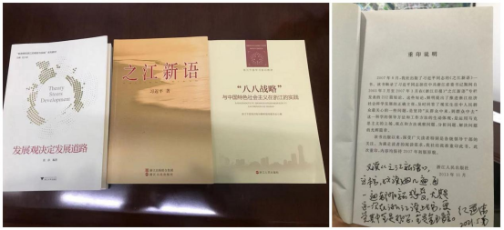 经济发展到一定阶段,如果没有创新,发展就会止步。谈到浙江的创新发展,纪道清拿出了他在工作之余认真阅读的3本书,几乎每一页都做了清晰的标注。这3本书分别是《之江新语》、《“八八战略”与浙江的实践》、《发展观决定发展道路》。