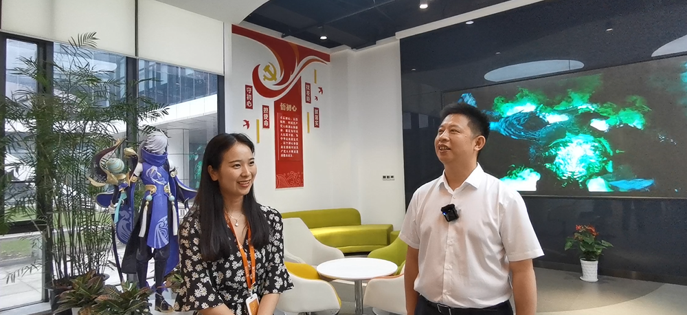 抱着对入驻企业的好奇心,纪道清走进一家名为宇石网络的游戏公司深入探秘。他具体询问了这个企业的营收情况,以及如何做好游戏创业创新等信息。