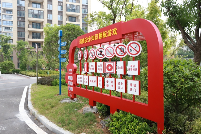 主题小区的设计紧扣“消防主旋律”,突出文化特色,以现有设施及绿化为基础进行改造,积极打造“一站式”消防科普宣传教育阵地,将知识性、趣味性、教育性相结合,利用消防宣传栏、宣传标语、消防形象漫画、“119”坐椅、消防翻板游戏等具有消防特色的设施,将防灭火知识、逃生口决、火灾事故教训等内容展现在群众面前,使广大群众在茶余饭后、晨练等闲暇活动中接受消防知识的熏陶,使消防安全理念深入人心,不断提高居民群众消防安全意识和自防自救能力,此举引发居民群众一致好评。