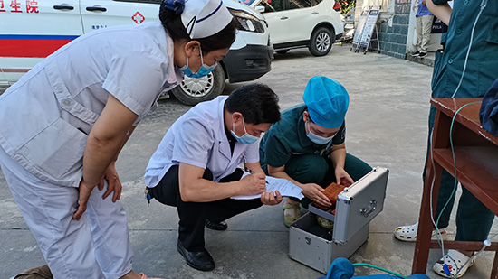 考官正在对医护人员抢救工作进行现场打分