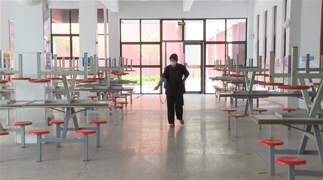 走进房县思源实验学校,工作人员正在对学生宿舍、食堂、图书馆等场所进行清洁消毒,该校防疫物资储藏室内,一次性口罩、酒精、84消毒液及各班配备的测温枪、喷洒壶等防疫物资摆放齐备。该校目前已经完成了第一轮消杀工作,预计在开学前一周、开学前三天再进行第二次、第三次的消杀工作,给全校的师生提供一个安全卫生的学习和工作环境。