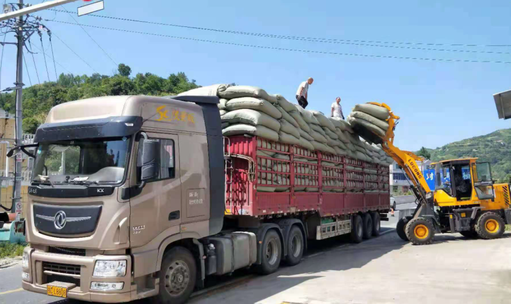 (卡车在姚坪乡虎尾沟村银杏叶加工厂装载加工完毕的银杏叶)