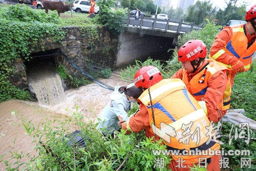 今日房县网讯 通讯员 彭磊 卢勇 报道: 8月26日上午,十堰市消防救援支队房县大队接到群众报警,称两名女子被困在未来城小区旁的河道内,请求帮助。接警后,房县消防救援大队迅速赶赴现场处置。