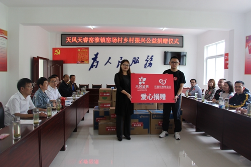 捐赠仪式上,窑淮镇党委政府对天风天睿公司不远千里为窑淮镇学生送温暖、献爱心表示衷心的感谢,也将会管理好、分配好、使用好爱心物资,确保爱心物资发挥真正作用,也希望天风证券与天风天睿公司今后继续关注窑淮镇社会公益和教育事业的发展。