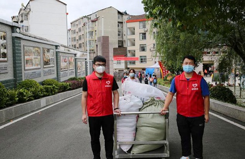 清晰的“一米间隔等候线”、一目了然的规定路线标识,孩子们实行错峰、安全、有序地进入校园。为了更好的给孩子们提供服务,志愿者团队的张毅、刘锐两位教师准备了手推车,帮助住宿生搬运行李,让孩子们快乐、舒心的返校。
