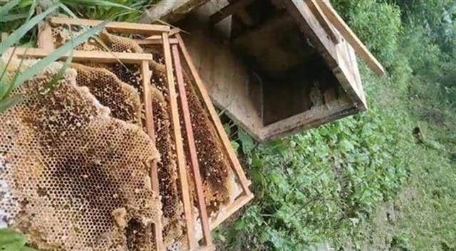今日房县网讯 通讯员 王超亿、王海琼 报道:近日,紧邻神农架的房县上龛乡崖蜜沟中蜂养殖基地,在上演现实版“熊出没”,这让养蜂专业户刘祥志头痛不已。最近正是采割蜂蜜的时节,浓郁的蜜香却勾起棕熊的馋欲,刘祥志介绍说,来偷吃的棕熊至少有3只,经统计目前已经有100多箱蜂蜜被损坏,损失大致在10万元左右。