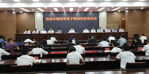 今日房县网讯 记者 刘臣 何赛男 报道:9月5日下午,我县召开乡镇领导班子换届任前集中谈话会。县委书记纪道清寄语乡镇领导干部,以敢于争先、争创一流的胸怀气魄,以只争朝夕、奋发有为的精神状态,解放思想,务实担当,真抓实干,努力做到无愧于组织、无愧于群众、无愧于自己的新岗位,为推动房县高质量跨越式发展,加快建设十堰副中心城市做出积极贡献。县委副书记、***县长谢晓鸣主持会议。