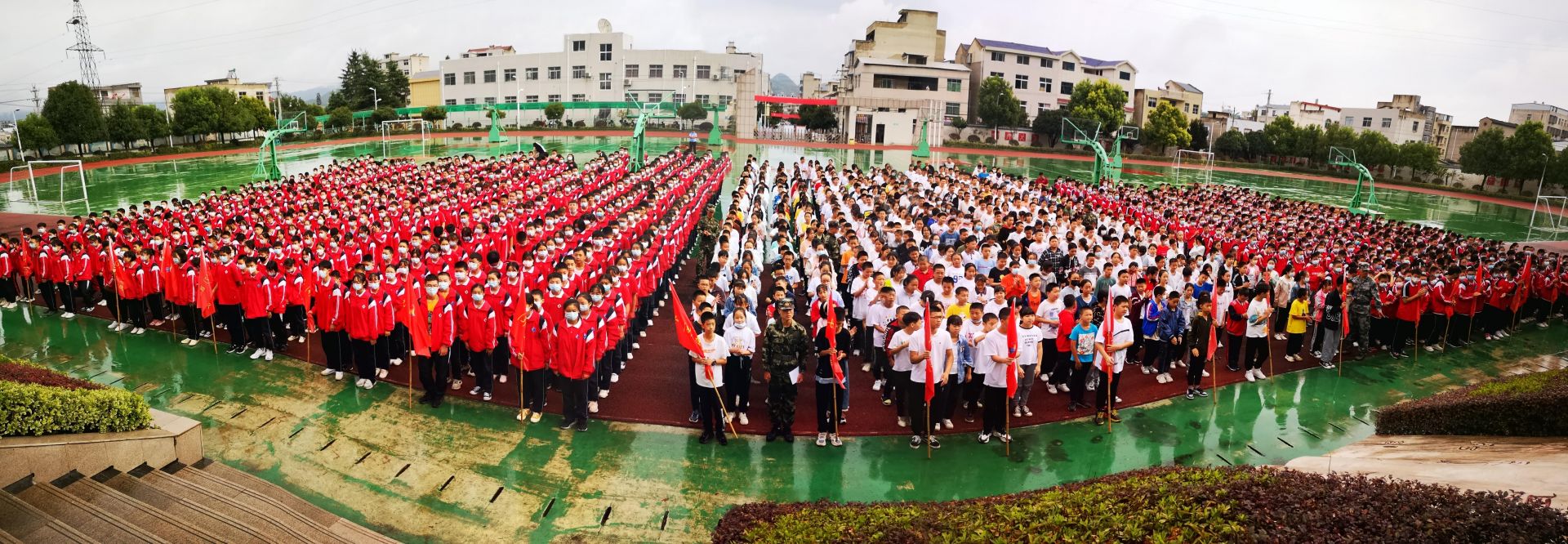 房县新闻网讯 记者 刘鹏飞 报道:2021年9月7日,七河中学迎来了2021年秋季开学典礼暨国防教育拓展训练新生养成教育开营仪式。七河中学校长何超、学校各科室负责人、教练员、全校学生参与活动。