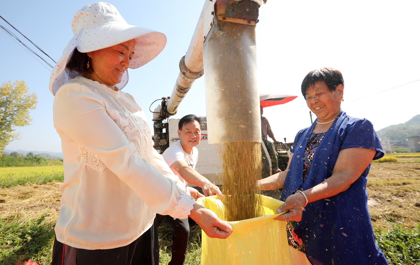 9月12日,联合收割机在军店镇月明村收割水稻。金秋九月,我县各地水稻喜获丰收,进入收割黄金期,随处可见收割机械大展身手。目前,县农业机械服务中心跟踪服务农机手,全力争抢睛好天气收割水稻,日收面积达到10000亩以上。