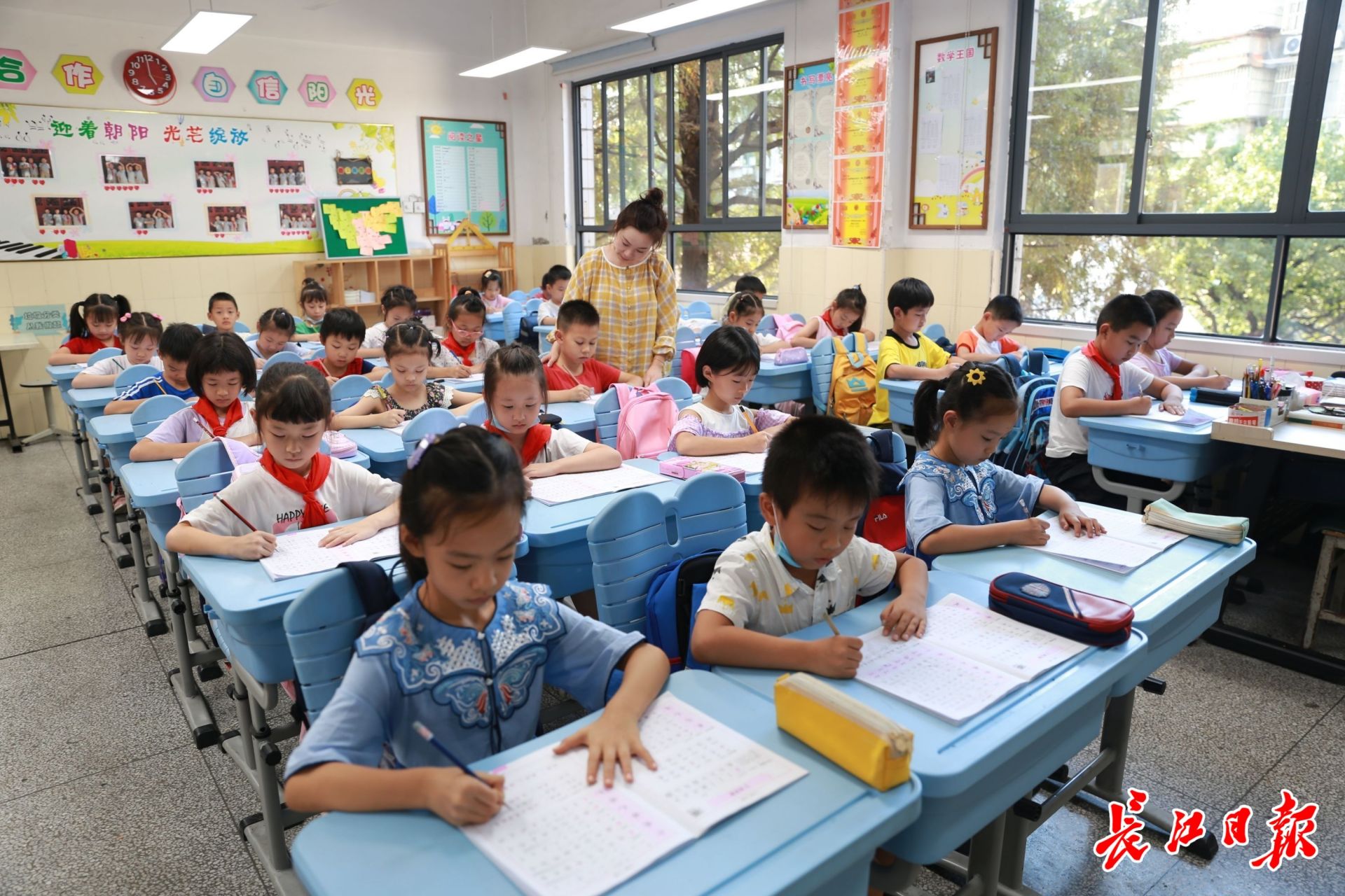 武昌实验小学课后托管服务中,老师对孩子进行指导。通讯员欧阳嵩 摄