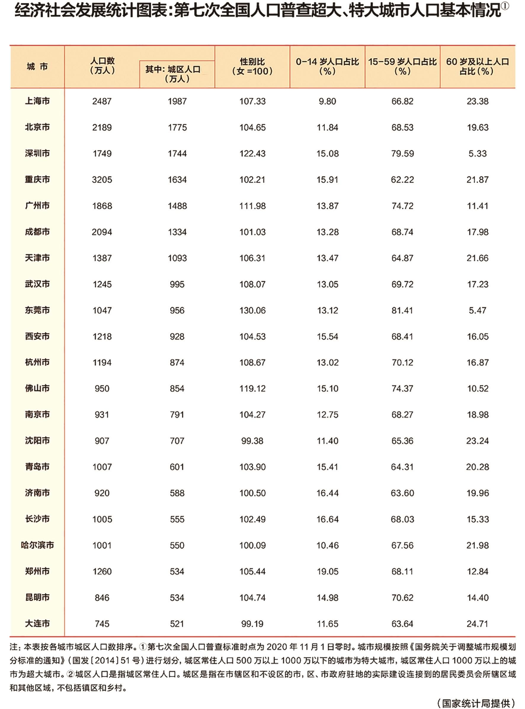 成都晋级超大城市,佛山、长沙、哈尔滨、昆明和大连进入特大城市行列。近日,国家统计局在《求是》杂志上公布第七次全国人口普查超大、特大城市人口基本情况。