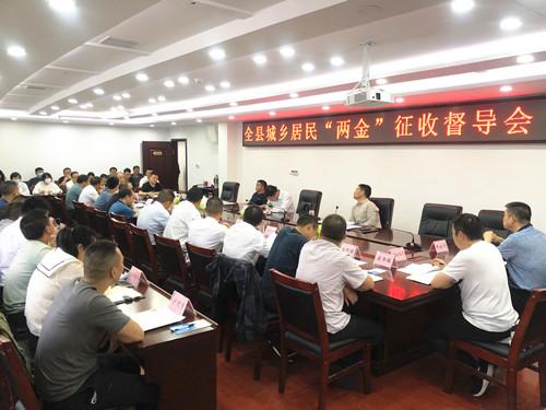 高勇强调,要严肃认识“两金”征收的形势,提高全县城乡居民对“两金”征收工作的认知度和重视度,通过发放政策宣传资料、广播喇叭等方式加大宣传力度,进一步强化群众参保意识,引导广大城乡居民积极参保;要明确口径,正视难点,摸清“两金”征收工作的困难症结,针对新参保、异地参保人员要因人因类施策,确保在规定时间内实现“两金”应缴尽缴;要加快征收进度,牵头部门要加强统筹和督导,实行工作进度周通报制度,以问题为导向倒逼工作落实,确保“两金”工作取得实效;要强化工作责任,严格落实属地责任,形成政府主抓,分管领导牵头落实的工作机制,加强各部门的协同配合,切实发挥督促、指导作用;要加强服务力度,强化服务观念,细化工作举措,规范征收管理,不折不扣地把工作抓紧抓好,确保全县“两金”征收任务高标准、高质量完成。