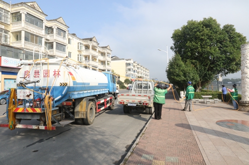 房县市政园林管理局管理人员李磊说:“由于多日来一直是连阴雨,从9月30 日开始才有好的晴天,我们园林局抓紧十一期间的这几天的晴天,对公园绿化,还有城区的行道树进行病虫害防治,组织了一辆洒水车,十几名绿化工人,在国庆期间我们不休息抢抓好的天气把全县的病虫害防治工作做好。”