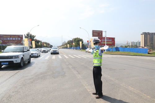 交警一中队执勤工作人员汪涛说:“我们国庆期间主要是在高速路口至南宁路、西关印象这三个地方,主要保证道路畅通,值守时间每天保证12个小时以上,每半个小时一换岗,目的是达到交通畅通、保证人民安全。”