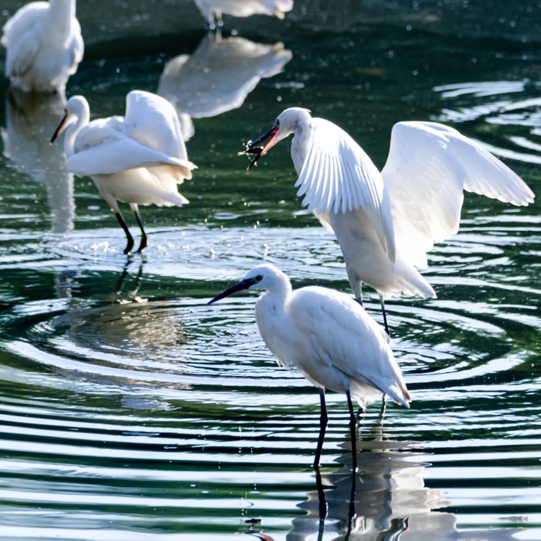 吸引了成千上万只的野鸭、白鹭等鸟类