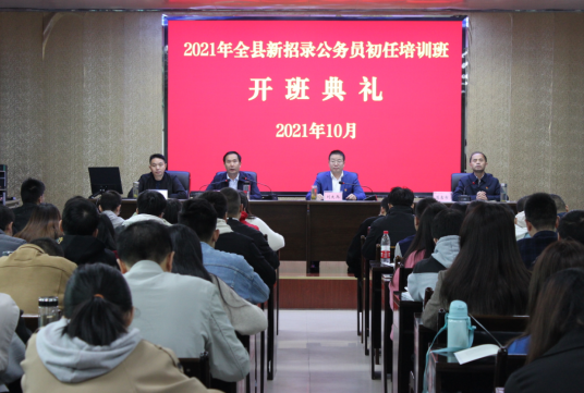 今日房县网讯 通讯员 昝爽 董俊鸿 报道:10月11日,2021年全县新招录公务员初任培训班开班仪式在房县县委党校举行,县委组织部副部长刘太兵和县委党校主要领导出席开班仪式。101名新录用公务员参加此次开班仪式。