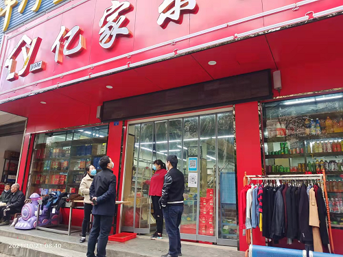 (图为青峰镇纪委工作人员督查超市疫情防控工作落实)