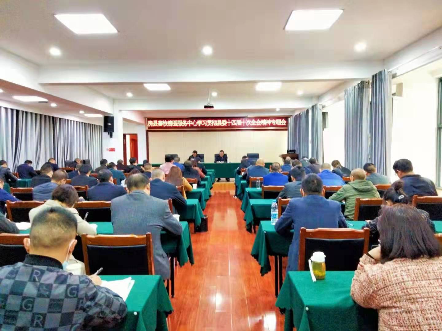 今日房县网讯 通讯员 王天传 报道:近日,县畜牧兽医服务中心召开专题会议,深入学习贯彻县委十四届十次全体(扩大)会议精神。中心机关、二级单位全体人员、20个乡镇畜牧兽医服务中心主任及业务骨干共计90余人参加会议。