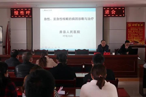 义诊活动结束后,在白鹤镇卫生院会议室,来自县医院的“323攻坚行动糖尿病防治专家团队”就《糖尿病的健康管理》、《急性心肌梗死的急诊救治》、《乙肝母婴阻断的管理流程》、《支气哮喘的诊疗》等内容对参加的卫生院医护人员、慢病管理人员及各村村医作了专题培训。