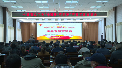 今日房县网讯:11月16日,由十堰市总工会主办的“中国梦 劳动美”劳模巡讲活动在我县举行,来自全县各行各业的180余名职工现场聆听了宣讲。县委常委、统战部长、县总工会主席丁选清参加活动并致辞。