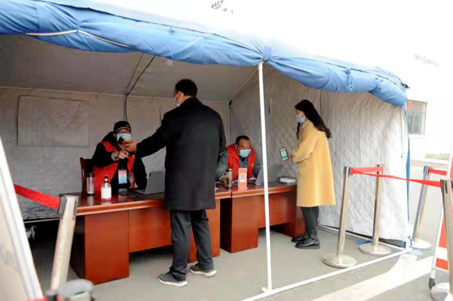 坚定主心骨,将支部建在点上。一个支部就是一座堡垒,一名党员就是一面旗帜。结合全县疫情防控实际成立疫情防控临时党支部,充分凝聚整合各方“战斗”资源,发挥党组织在战“疫”一线的战斗堡垒作用和党员的先锋模范作用。“虽然党支部是临时的,但为民服务的宗旨是永恒的、党员肩负的责任是永恒的、先锋模范的作用是永恒的,我们坚决发挥模范带头作用,坚决打赢疫情防控阻击战”,临时党支部书记许明涛说。检测点临时党支部党员团结带领干部群众全身心投入防控工作一线,将监测点作为党支部的战斗阵地,24小时不间断轮岗值守,逐个核实来往车辆出行轨迹、测量人员体温、做好登记造册、劝返非必要出行,确保全面掌控、不漏一人。