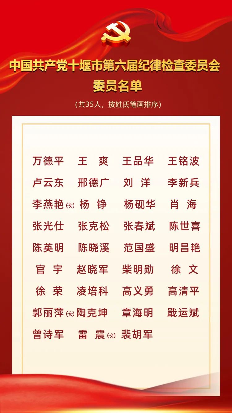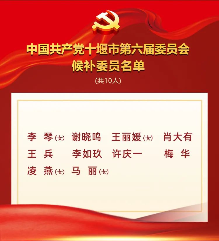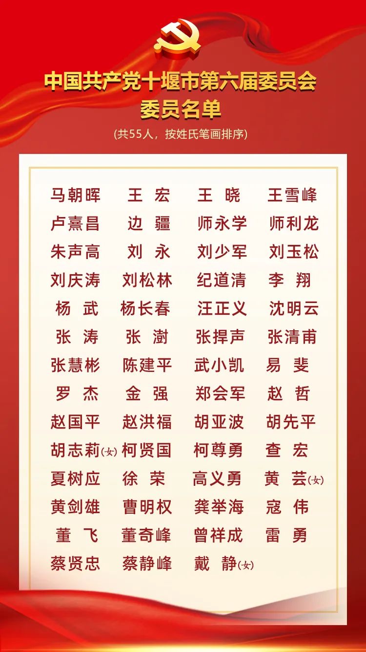 会议以无记名投票的方式,选举产生了55名中国共产党十堰市第六届委员会委员、10名候补委员、35名市纪委委员。