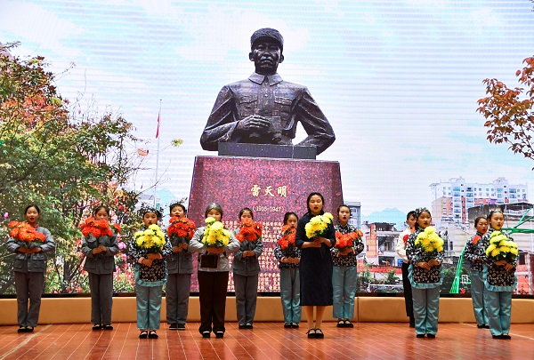 《房陵壮歌》是学校根据鄂西北抗日救亡运动和解放鄂西北的重要领导者之一雷天明的事迹进行编排的。剧中再现抗日战争全面爆发后,雷天明以国家大事为重,放弃学业回到房县,组织宣传唤醒民众的场景。他在当时的西关小学以教书为掩护,争取一切机会利用一切形式,成立抗日救亡宣传队、歌咏队同反动派作斗争,在抗战全面爆发后主动请战到条件艰苦的鄂西北深山带领部队作战,后被叛徒出卖被解压到保康监狱,最终被杀害的故事。