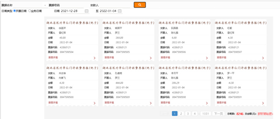 县医院作为全县第一家非税电子票据和第一家全市县级医疗机构电子票据试点单位,根据湖北省财政厅、湖北省卫健委、湖北省医保障局关于明确医疗收费电子票据试点通知的文件精神,通过前期全院不懈的努力和几个月的调试,于2021年12月28日正式上线电子票据。截止目前,共开出8246张电子票据。